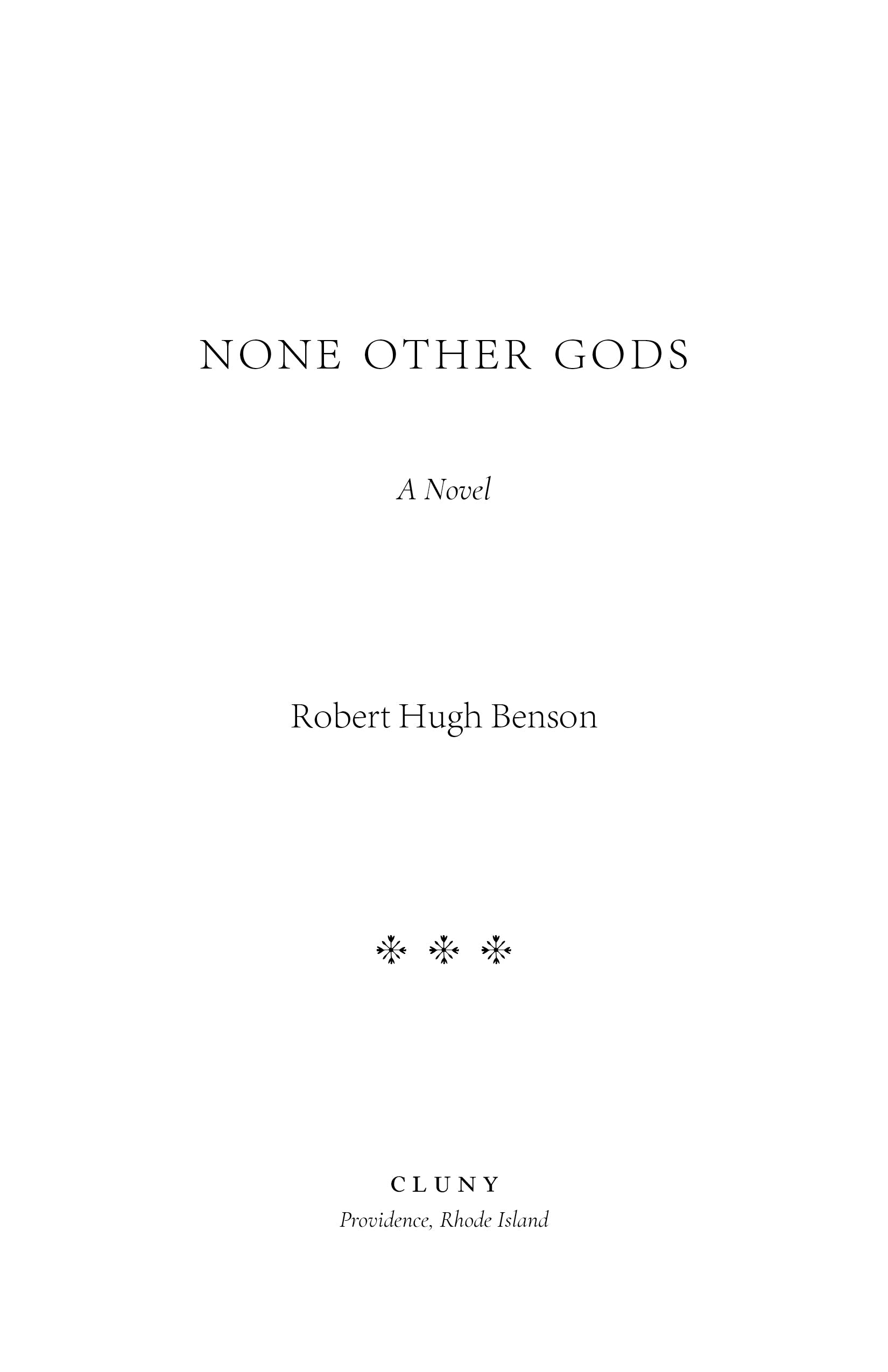 None Other Gods tells of one Frank Guiseley, a young man who abruptly departs his Cambridge education to “take to the roads” of England. Eventually, the novelty of these newfound wandering ways wears off; yet Frank has discovered that life is now imbued with a new and mysterious sense of purpose and peace—a sensibility he cannot help but feel is only possible by the unequivocal, fullhearted renouncing of the world and its riches. Having converted to the Catholic faith while at Cambridge, Frank experiences the transformative changes of grace—what Benson so aptly defines in the novel’s Dedication as “purgation, illumination, and union.”