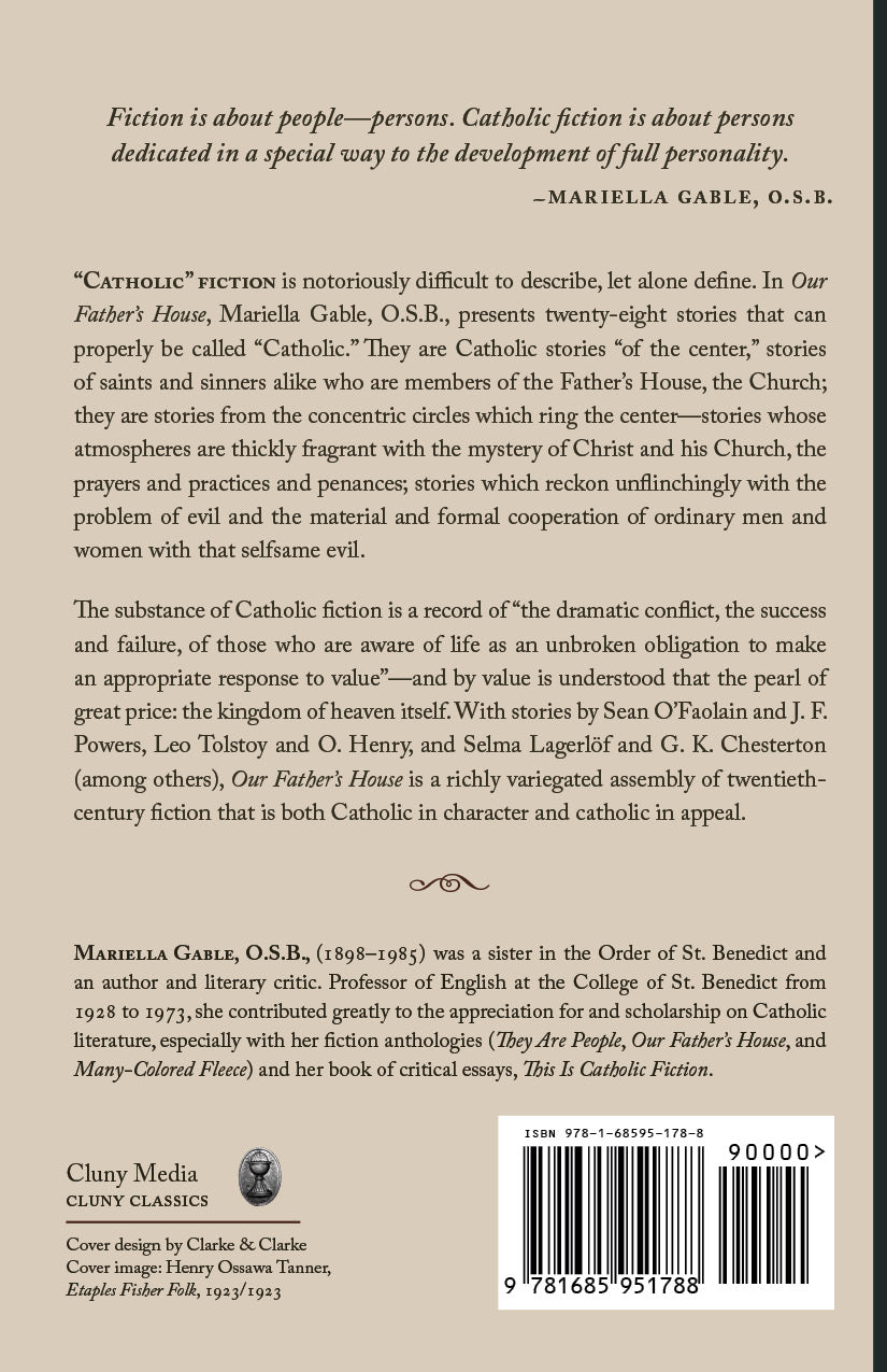 “Catholic” fiction is notoriously difficult to describe, let alone define. In Our Father’s House, Mariella Gable, O.S.B., presents twenty-eight stories that can properly be called “Catholic.” They are Catholic stories “of the center,” stories of saints and sinners alike who are members of the Father’s House, the Church; they are stories from the concentric circles which ring the center—stories whose atmospheres are thickly fragrant with the mystery of Christ and his Church, the prayers and practices and penances; stories which reckon unflinchingly with the problem of evil and the material and formal cooperation of ordinary men and women with that selfsame evil.