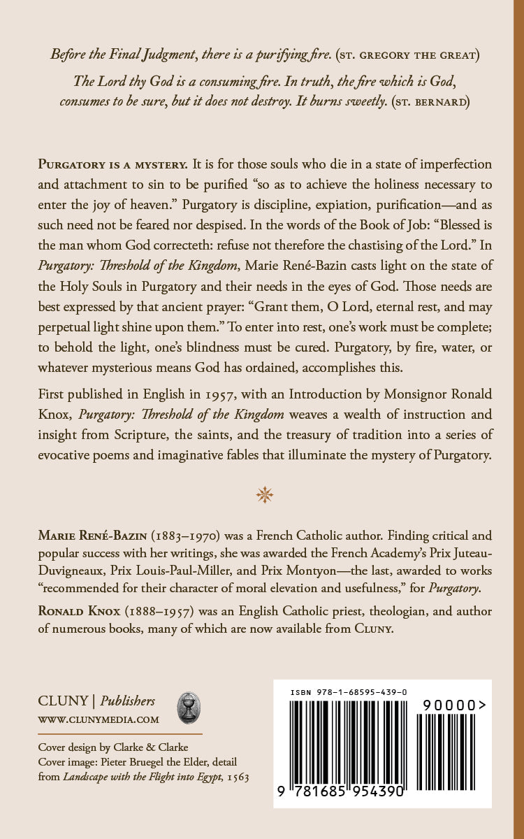 First published in English in 1957, with an Introduction by Monsignor Ronald Knox, Purgatory: Threshold of the Kingdom weaves a wealth of instruction and insight from Scripture, the saints, and the treasury of tradition into a series of evocative poems and imaginative fables that illuminate the mystery of Purgatory.