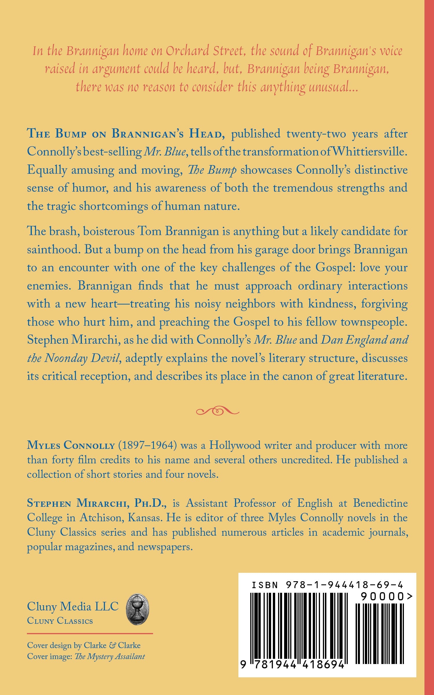 Stephen Mirarchi, Ph.D., is Assistant Professor of English at Benedictine College in Atchison, Kansas. He is editor of three Myles Connolly novels in the Cluny Classics series and has published numerous articles in academic journals, popular magazines, and newspapers.