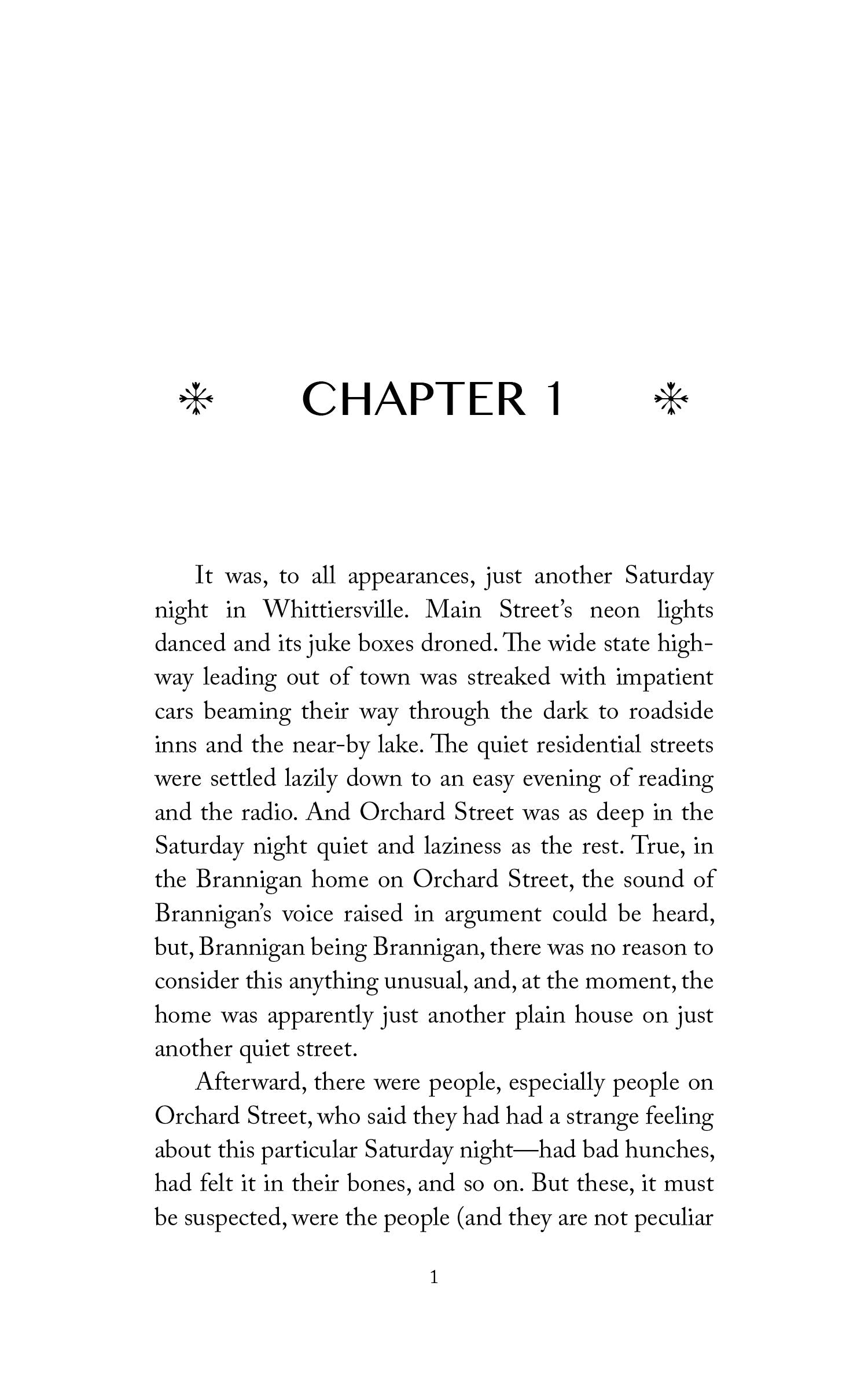 “In the Brannigan home on Orchard Street, the sound of Brannigan’s voice raised in argument could be heard, but, Brannigan being Brannigan, there was no reason to consider this anything unusual…”