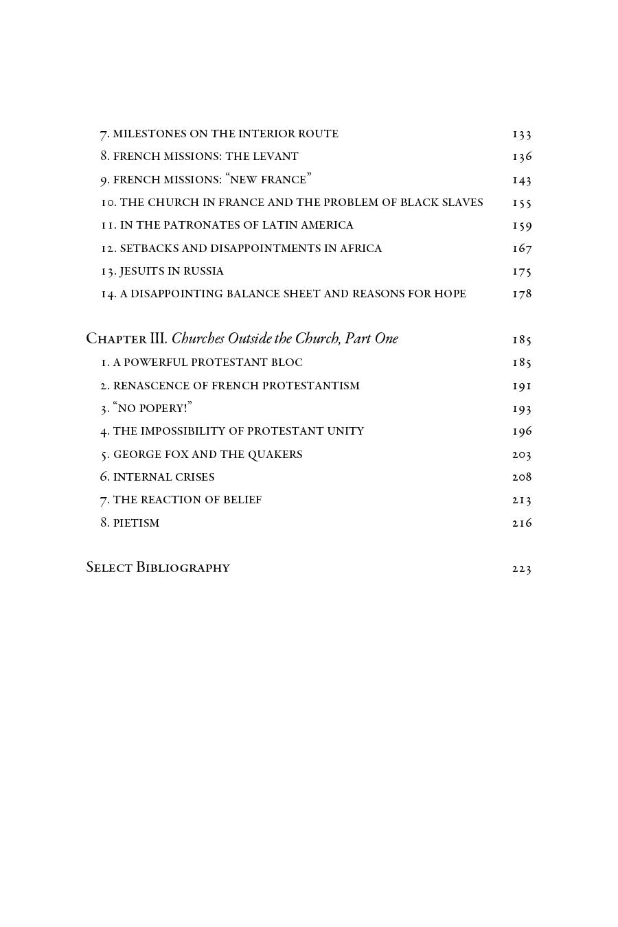 The Church of the Classical Age: The Era of Great Splintering is the seventh installment in Henri Daniel-Rops’ magnificent History of the Church of Christ. This volume surveys the eighteenth century’s intellectual revolution, wrought by Galileo, Descartes, and Rousseau (among others); appraises the Church’s missionary efforts—in Asia, with the Chinese rites controversy and the spirited work of de Nobili and de Britto in India; in Canada, with the heroic endeavors of Sts. Isaac Jogues and John de Brébeuf; in the New World and Africa, where clashing cultures and tumultuous race relations deepened the difficulty of evangelization; and in Russia, where the Jesuits labored to re-establish fraternity with the Orthodox Church; and, lastly, opens a candid examination of the “churches outside the Church,” beginning with the proliferation of European Protestant sects and the emergence of new groups like the Quakers and the Pietists.