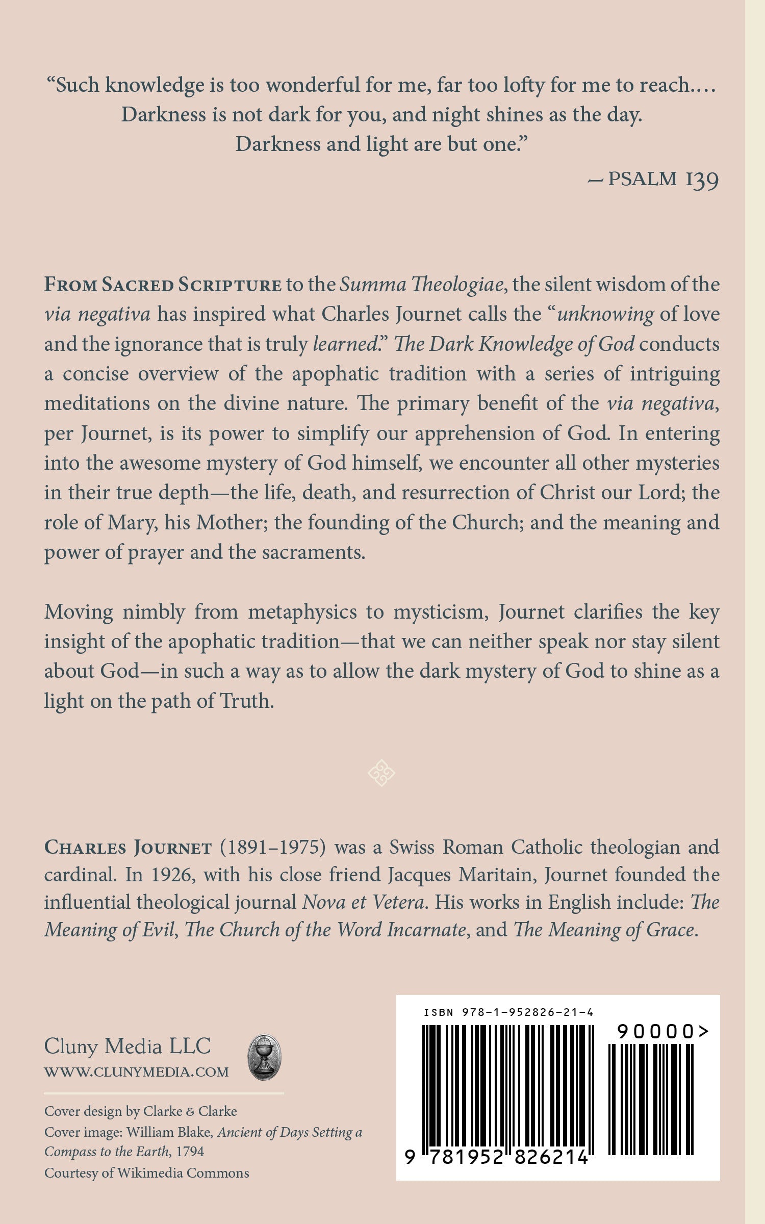 From Sacred Scripture to the Summa Theologiae, the silent wisdom of the via negativa has inspired what Charles Journet calls the “unknowing of love and the ignorance that is truly learned.” The Dark Knowledge of God conducts a concise overview of the apophatic tradition with a series of intriguing meditations on the divine nature. In entering into the awesome mystery of God himself, we encounter all other mysteries in their true depth.