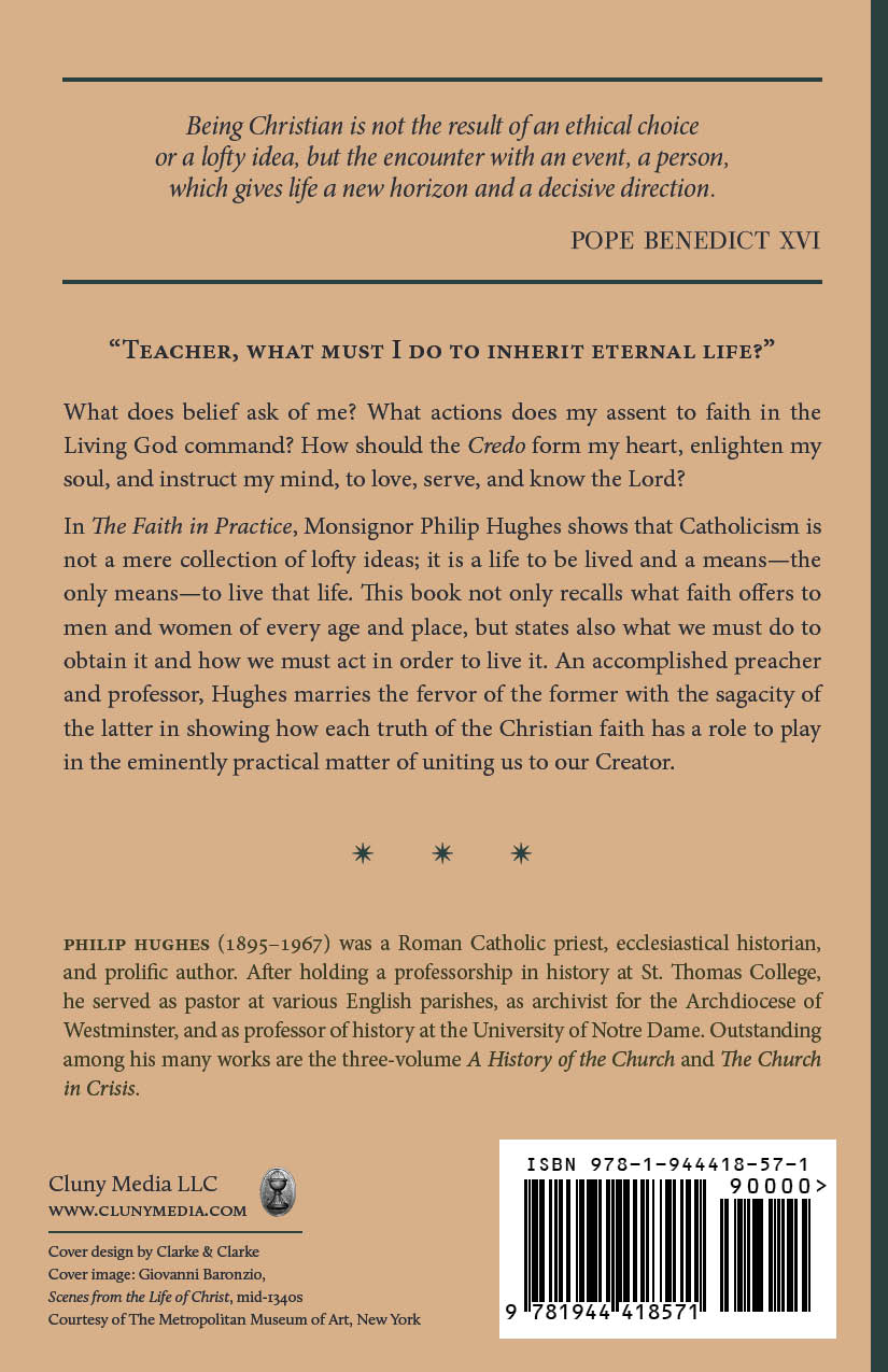 In The Faith in Practice, Monsignor Philip Hughes shows that Catholicism is not a mere collection of lofty ideas; it is a life to be lived and a means—the only means—to live that life. This book not only recalls what faith offers to men and women of every age and place, but states also what we must do to obtain it and how we must act in order to live it. An accomplished preacher and professor, Hughes marries the fervor of the former with the sagacity of the latter in showing how each truth of the Christian faith has a role to play in the eminently practical matter of uniting us to our Creator.