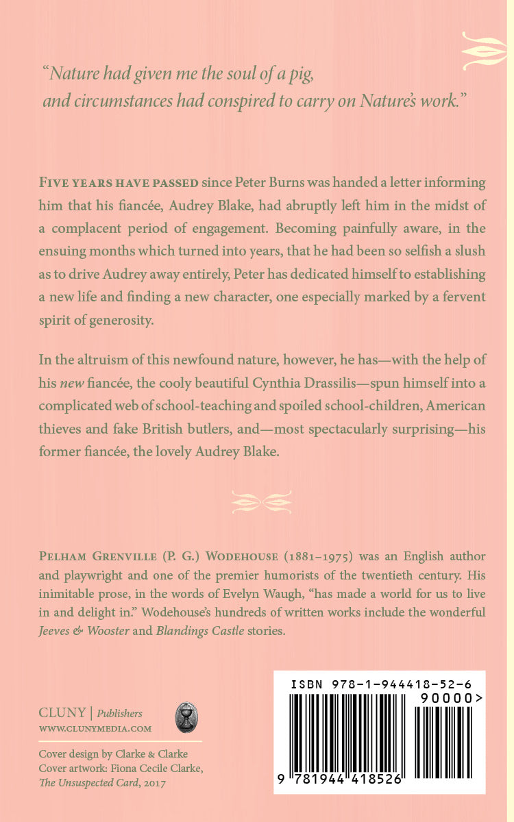 In the altruism of this newfound nature, however, he has—with the help of his new fiancée, the cooly beautiful Cynthia Drassilis—spun himself into a complicated web of school-teaching and spoiled school-children, American thieves and fake British butlers, and—most spectacularly surprising—his former fiancée, the lovely Audrey Blake.
