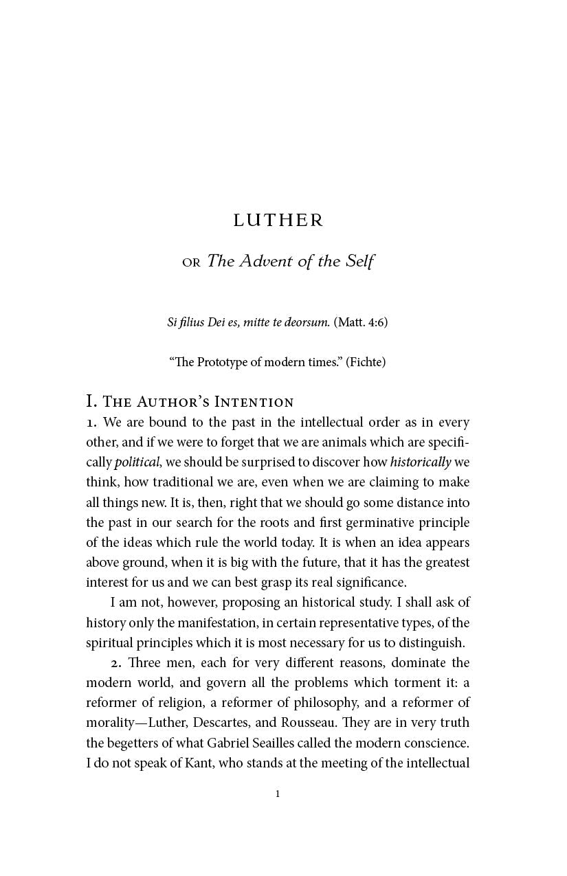 Written with Maritain’s typical perspicacity, Three Reformers: Luther, Descartes, Rousseau is fascinating both as biography and philosophy.